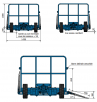 Deux essieux directeurs, avec réversibilité par timon amovible (réversibilité également possible en train de 2 remorques